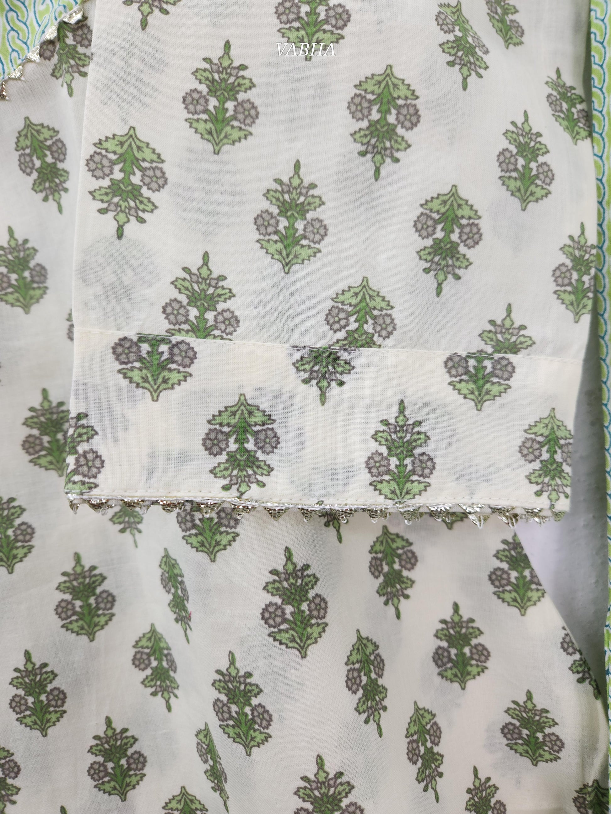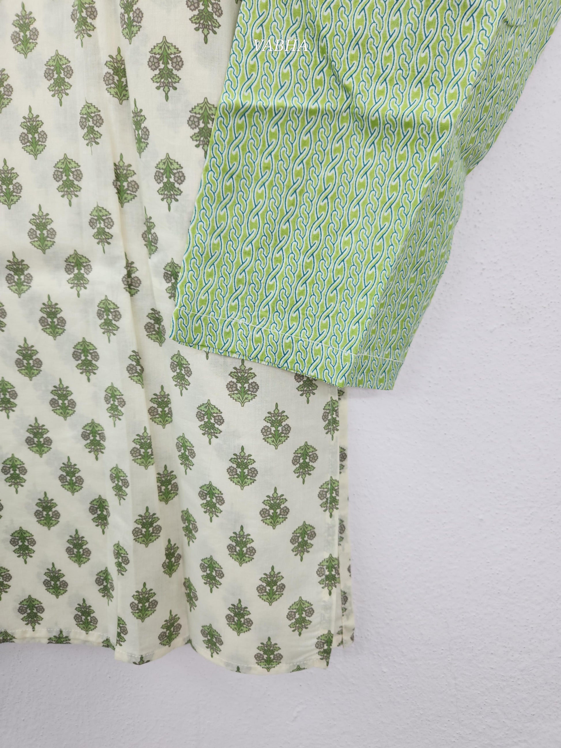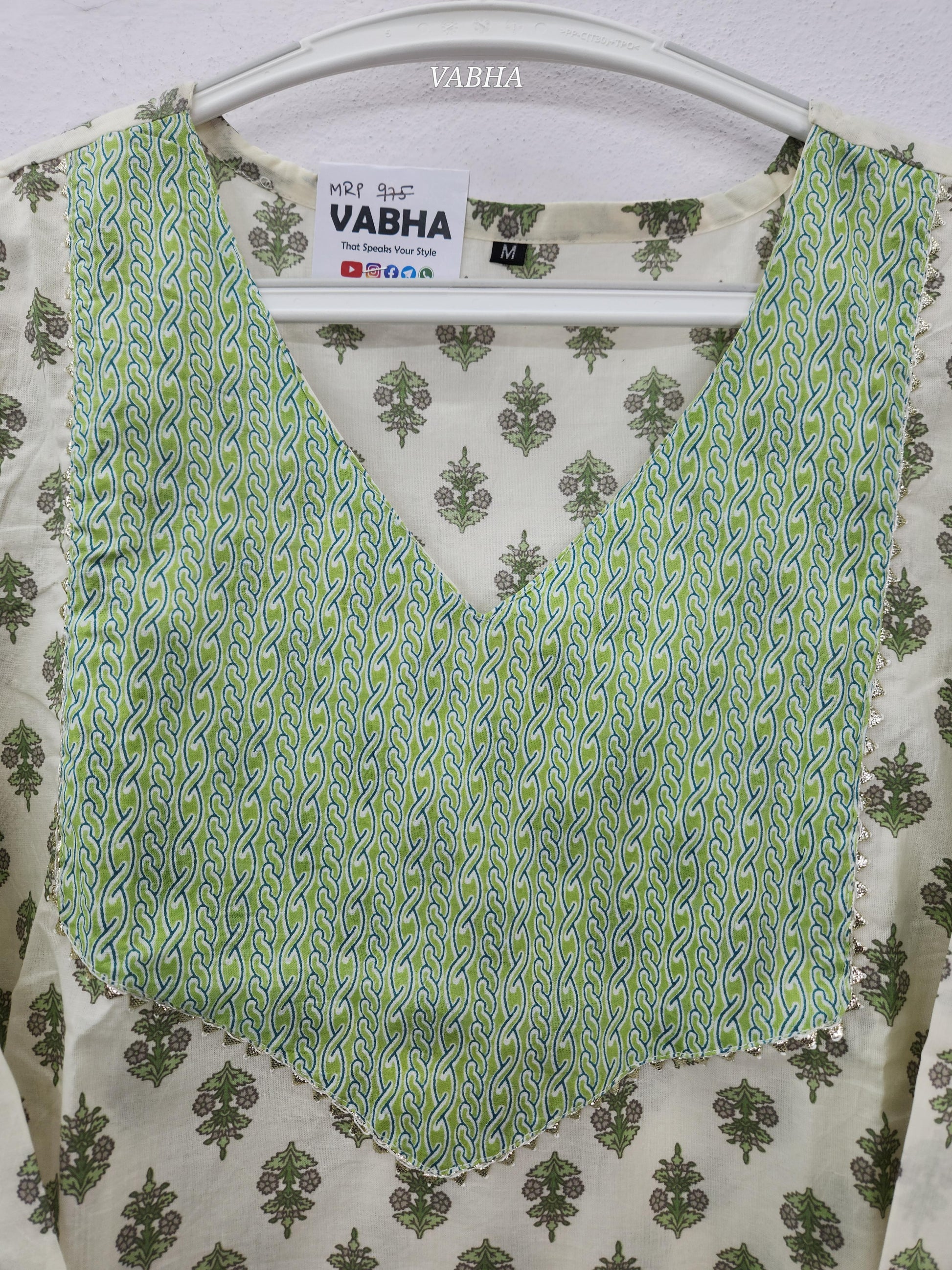 C60 Cream Pink Floral Print V Neck Straight Cut Kurthi Pant