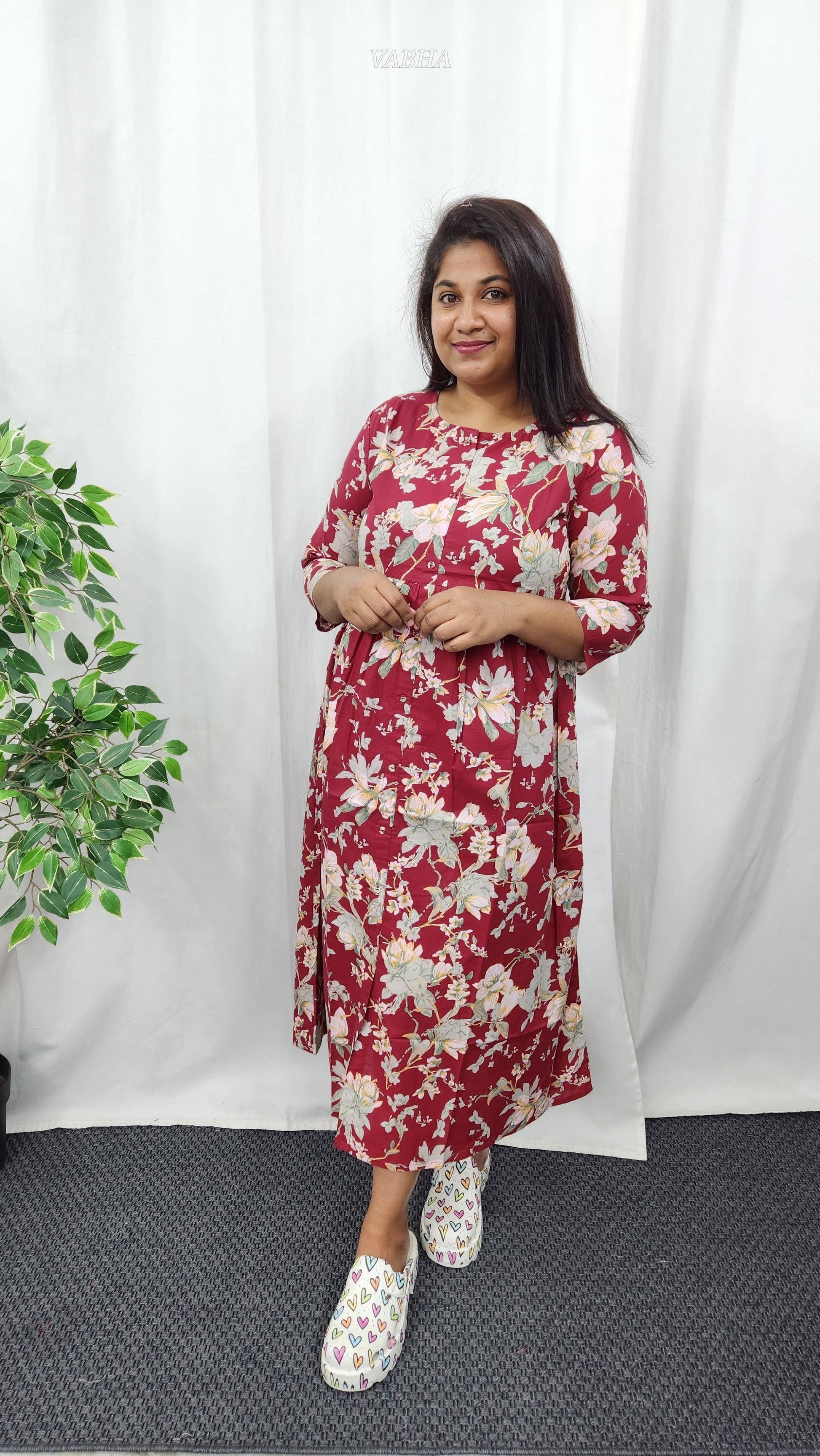 F09 Maroon Floral Cotton Frock