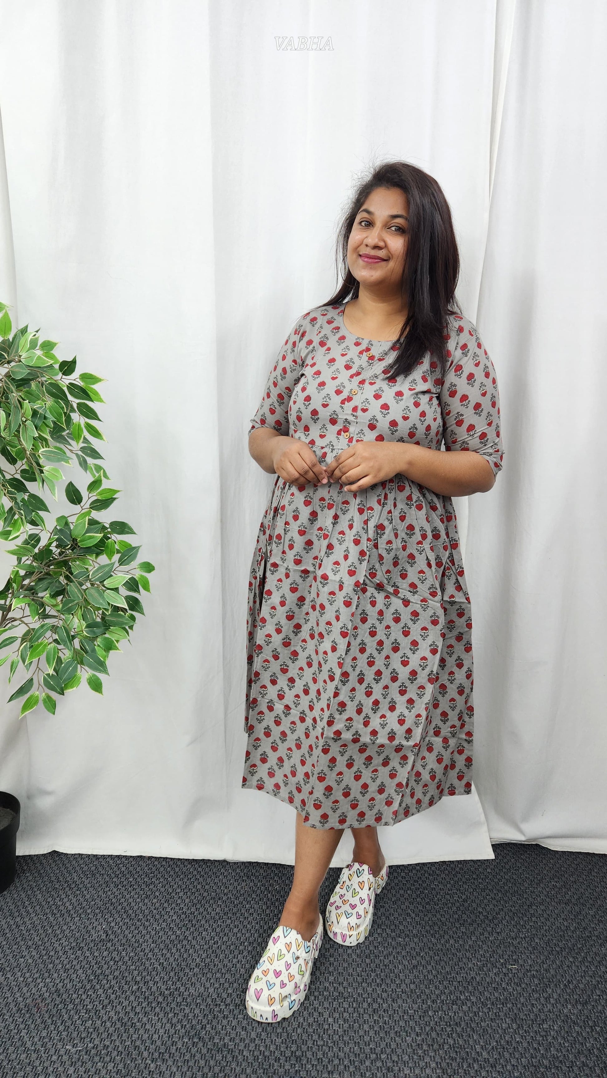 F25 Grey Printed Cotton Frock