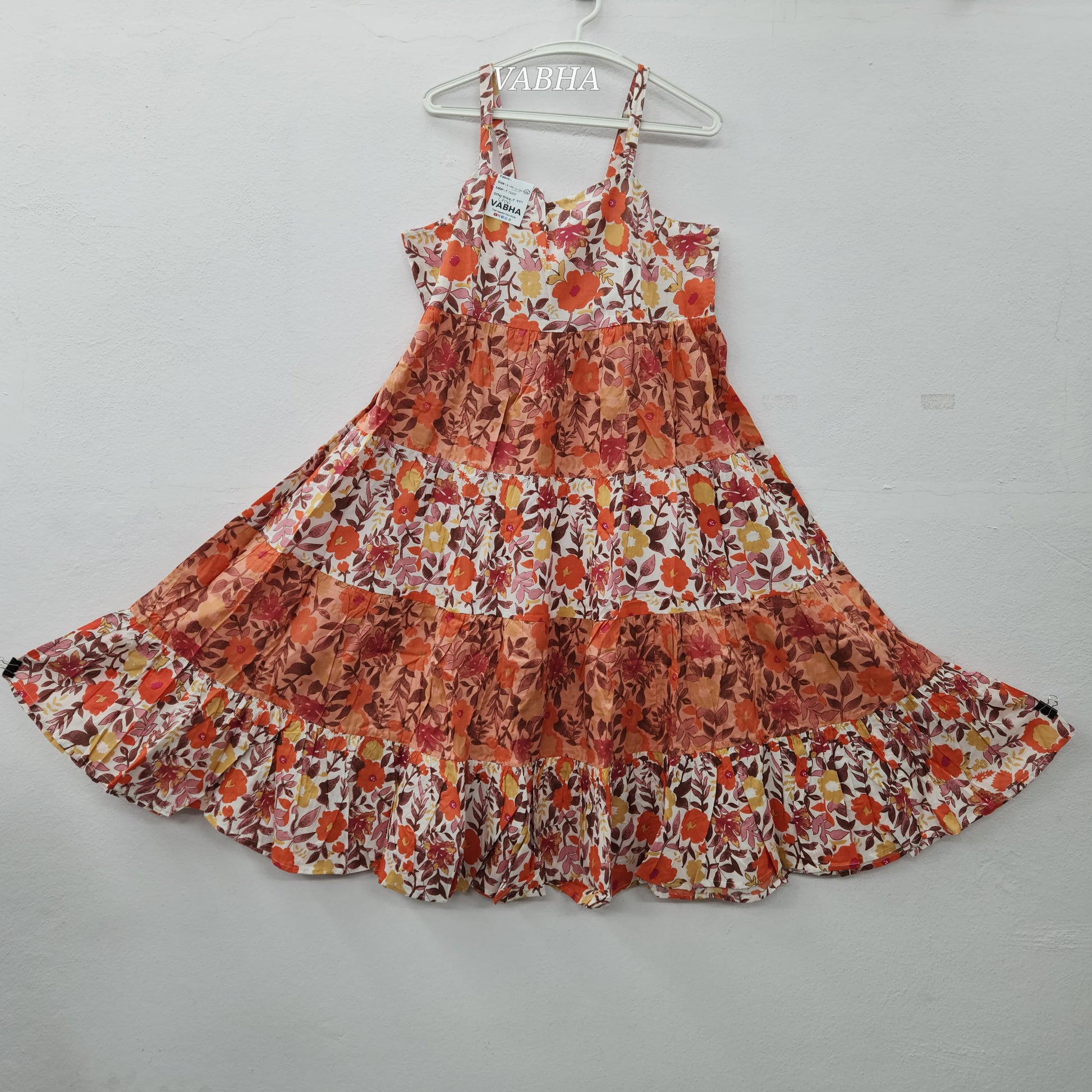 F54 Peach Floral Print Spaghetti Cotton Frock