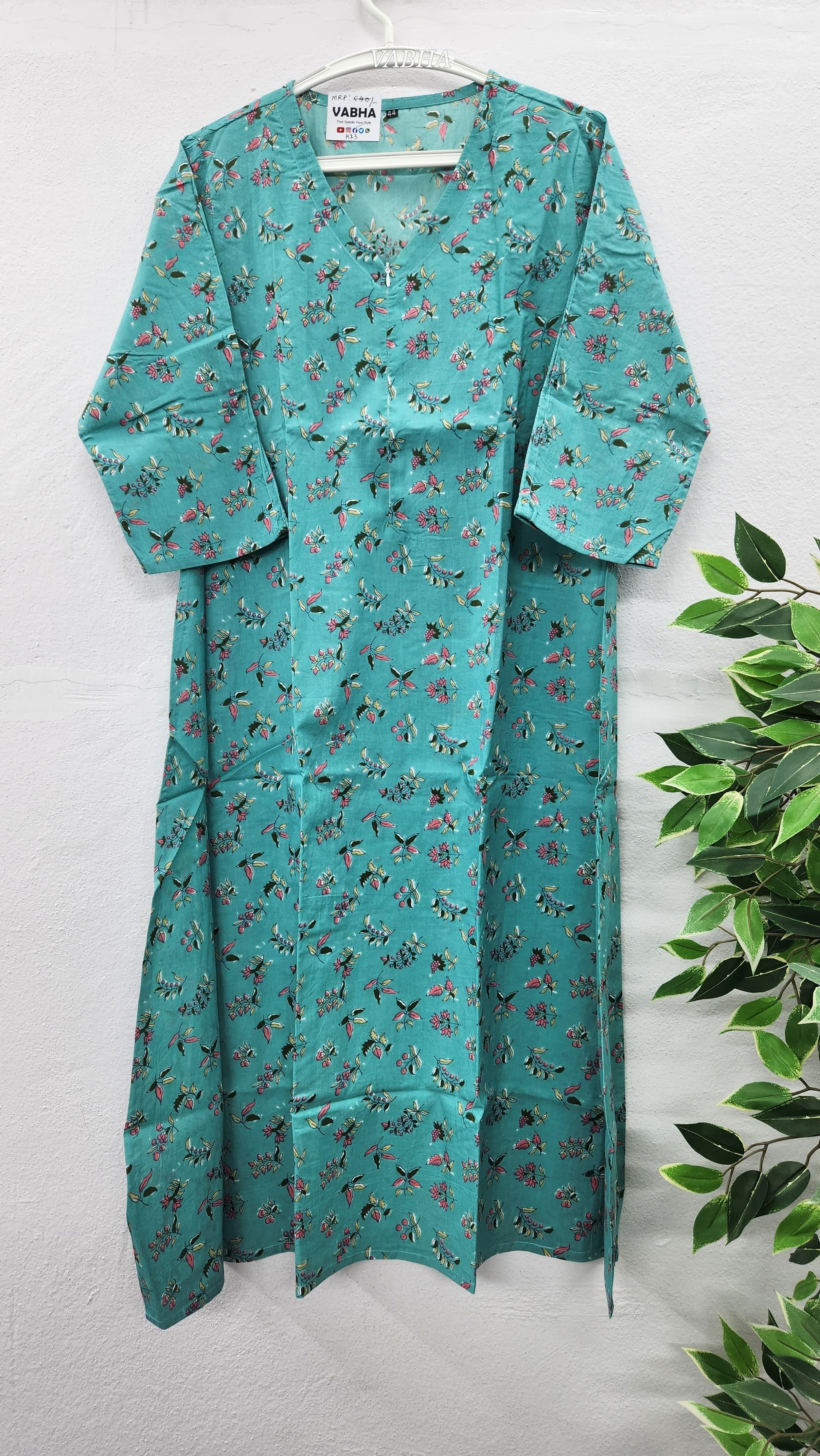 K23 Light Blue Feeding Zip A line Cotton Kurti