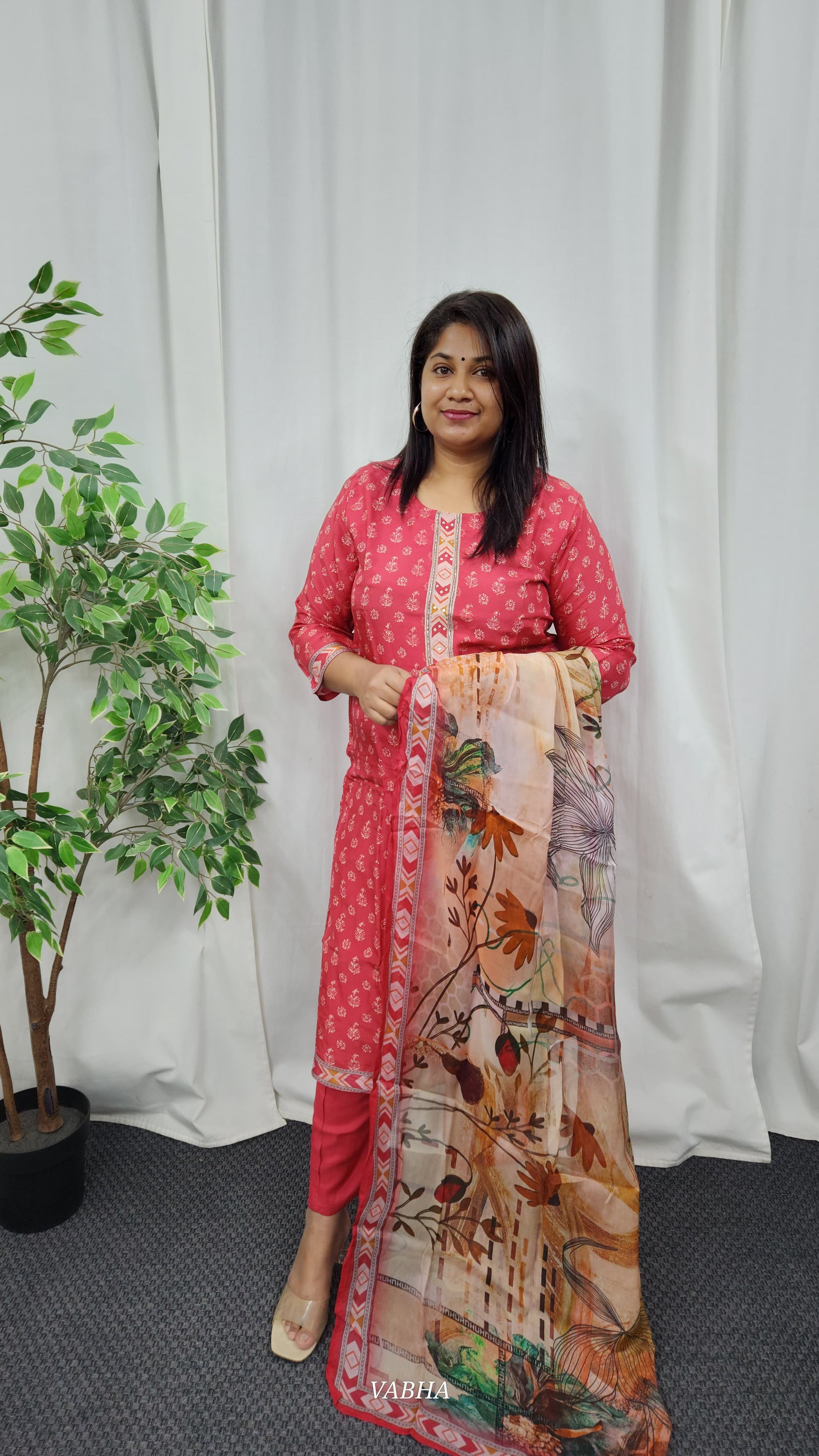 KPD06 Pink Muslin Kurti Pant Dupatta