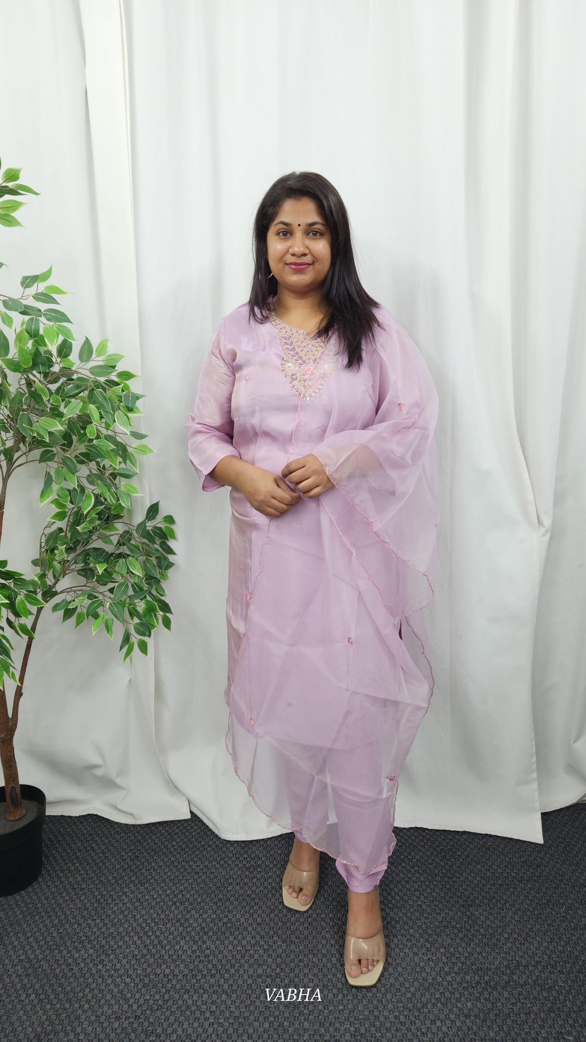 KPD09 Lavender Tissue Kurti Pant Dupatta