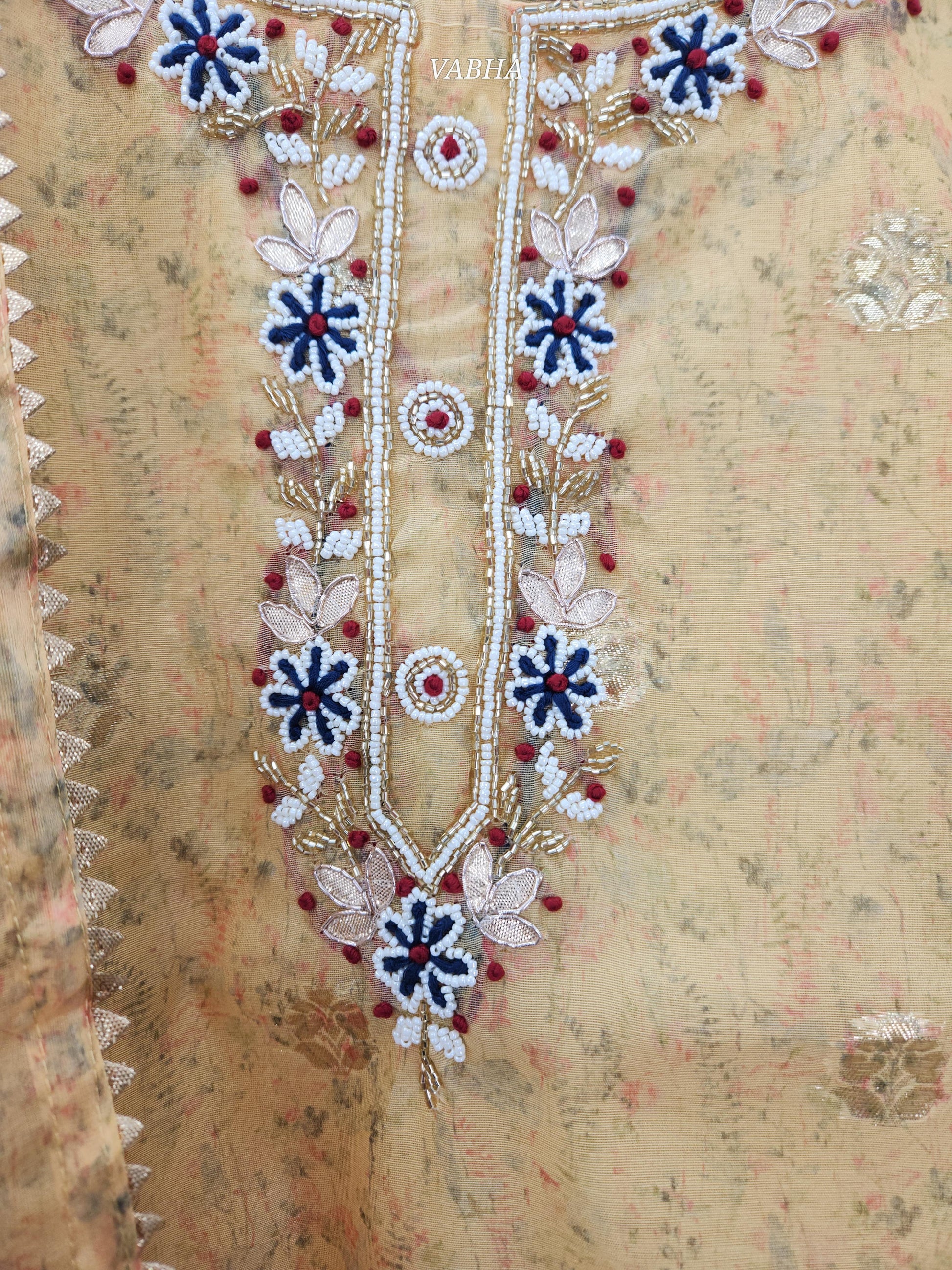 KPD130 Yellow Muslin Silk With Lining Round Neck With Heavy Pearl Work Straight Cut Kurti Pant Duppatta