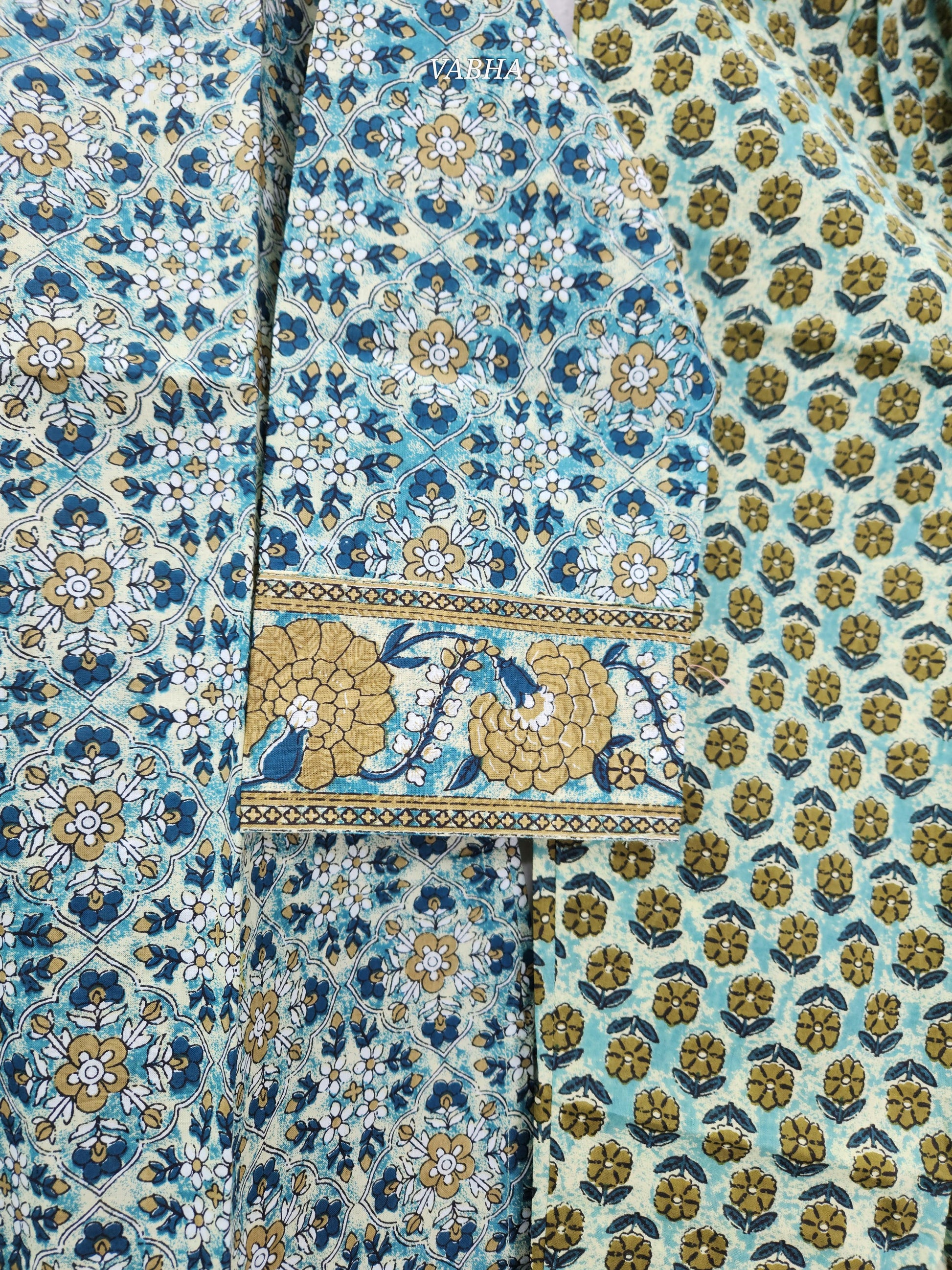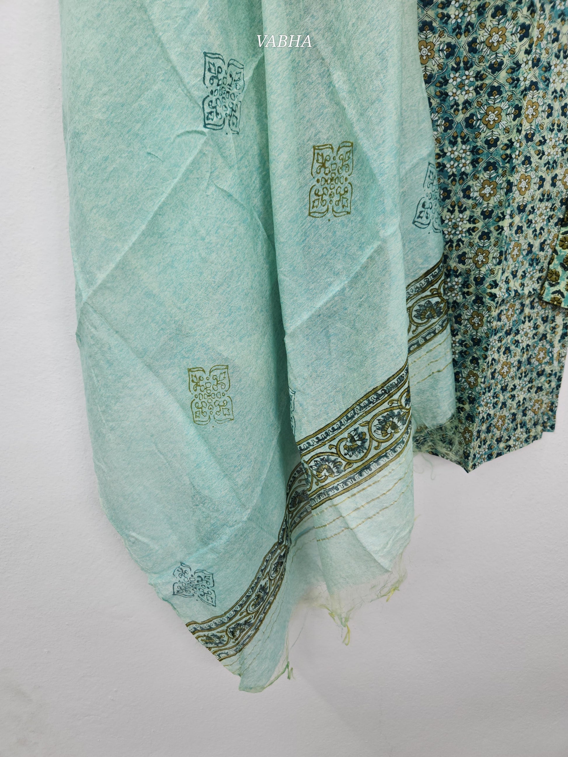 KPD160 Green Semi Cotton V Neck Floral Print Straight Cut Kurti Pant Duppatta
