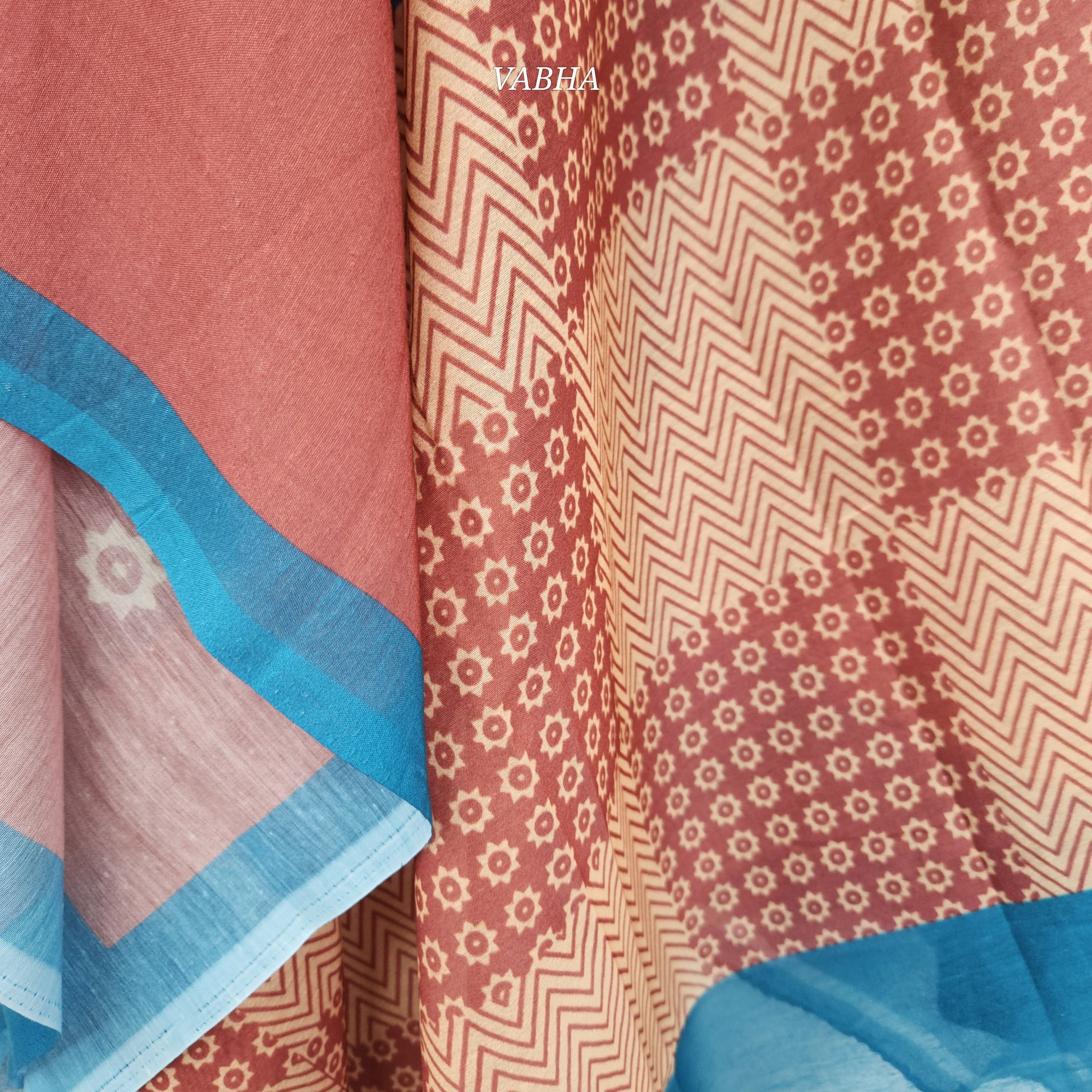 KPD58 Peacock Blue V-neck Applique Design Straight Cut Cotton Kurti Pant Dupatta