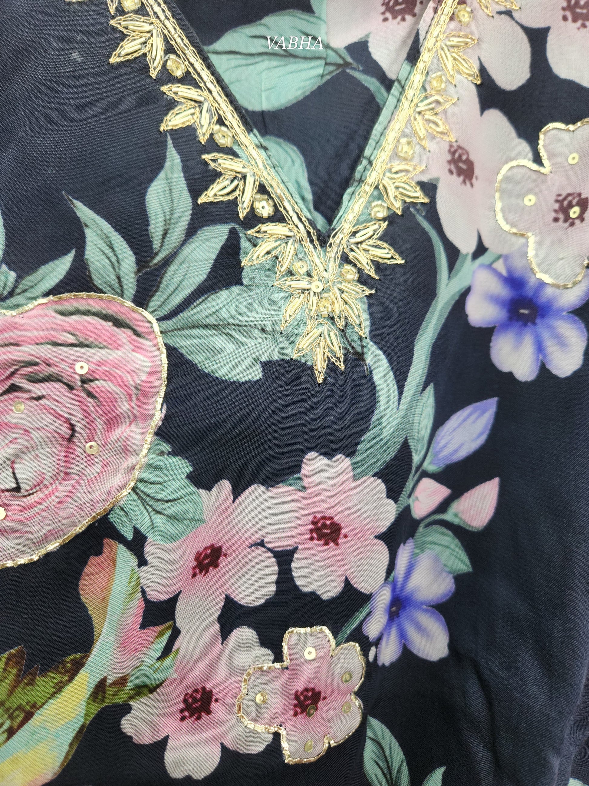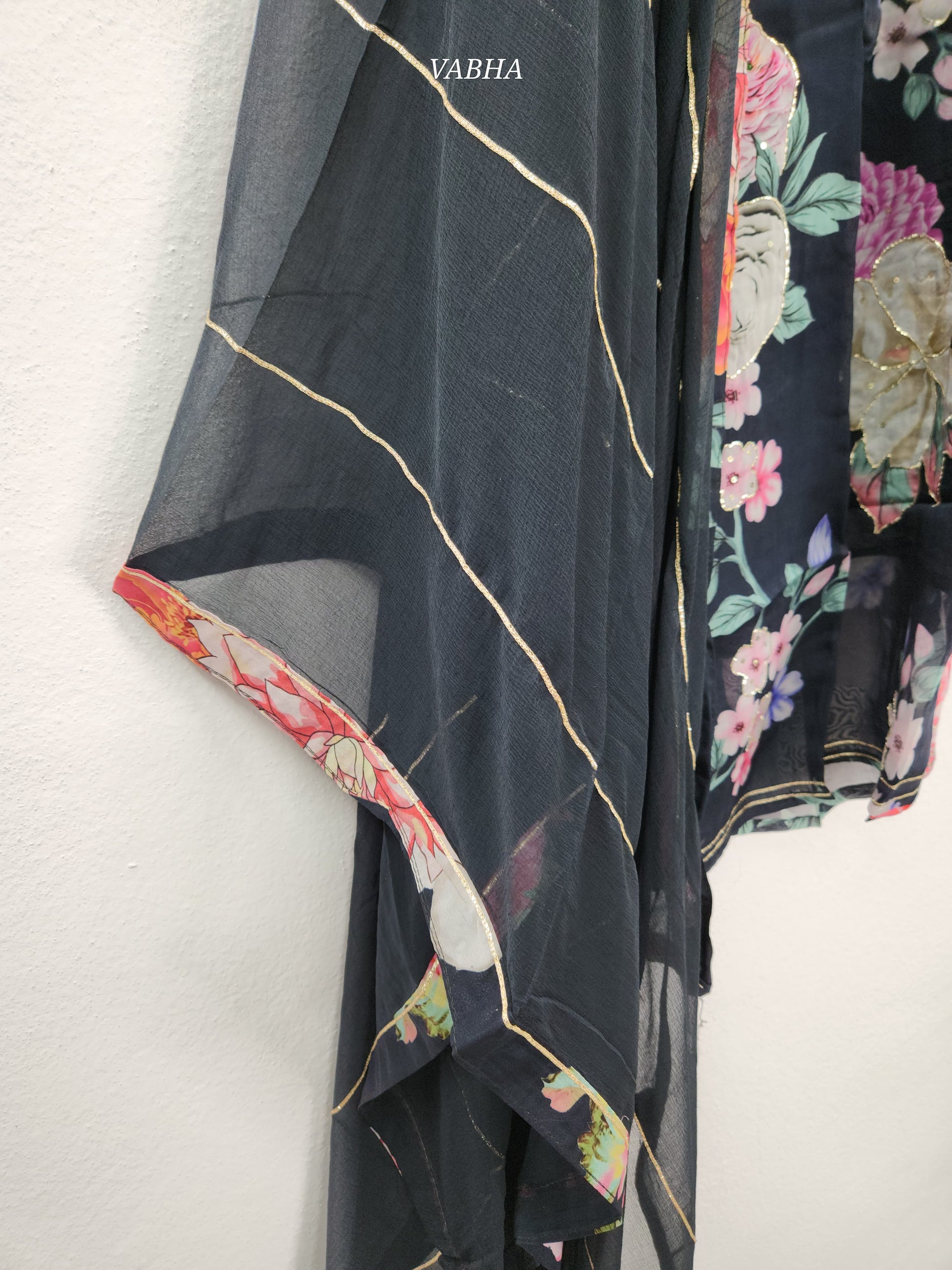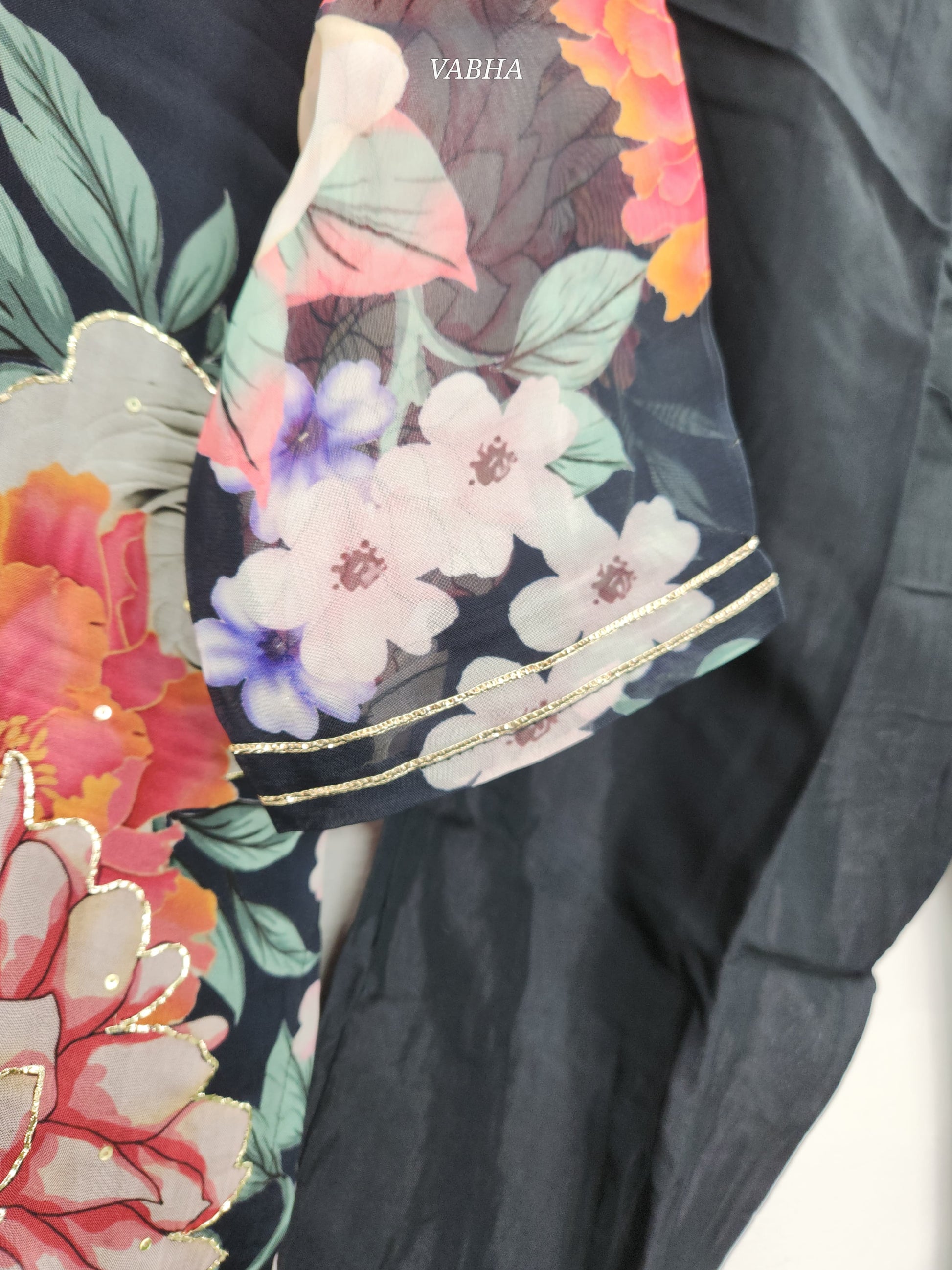 KPD88 Black Organza Digital Print With Heavy Work V-neck Kurti Pant Dupatta